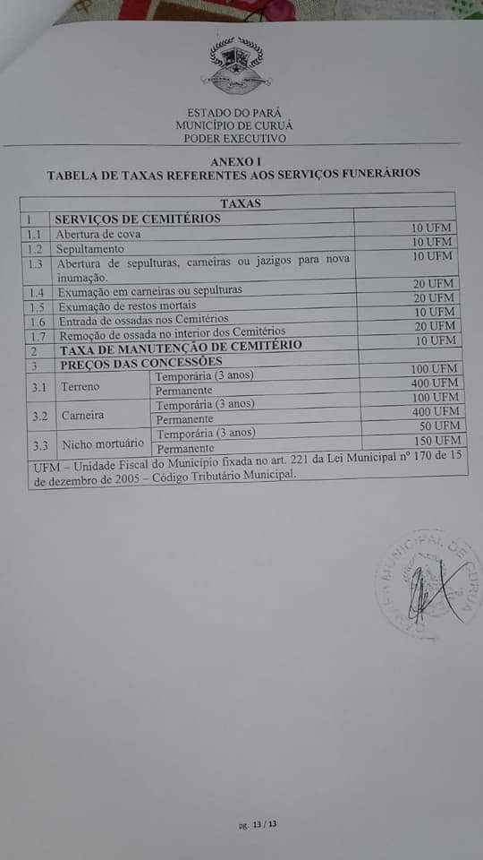 COBRANÇA NO CEMITÉRIO MUNICIPAL DE CURUÁ